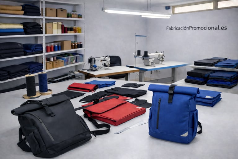 Somos un taller de fabricación promocional especializado en bolsas, mochilas y fundas personalizadas para empresas, entidades y eventos.